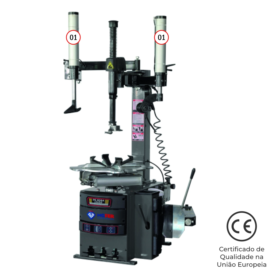 As ferramentas que entram em contato com o pneu como cabeçote de desmontagem e montagem, garras de fixação e pá de recalque de pneus são equipadas com proteções para garantir que os aros não sejam danificados.